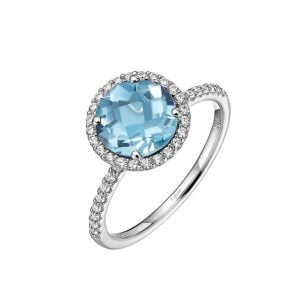 Checkerboard-Cut Blue Topaz and Simulated Diamond Ring