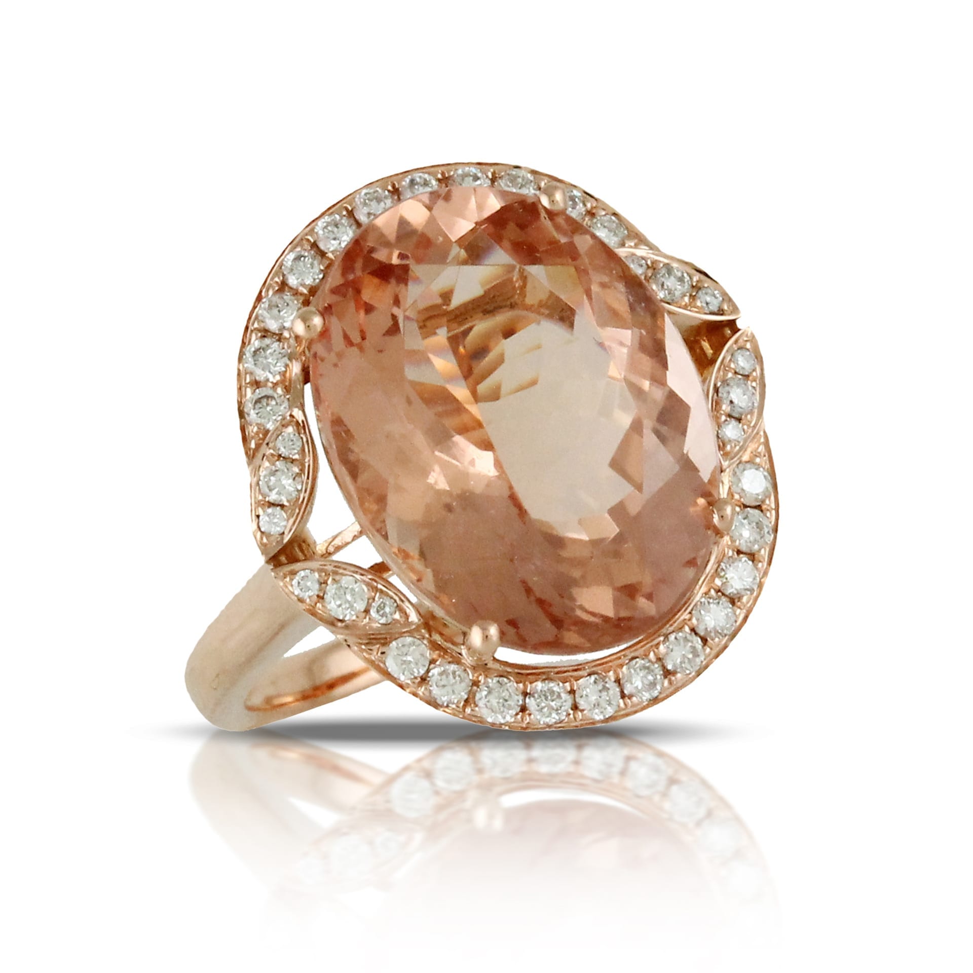 The rose gold band is something a little bit different compared to the more traditional yellow gold or white gold, and looks sensational on warmer skin tones. The play of the morganite and the rose gold is superb.