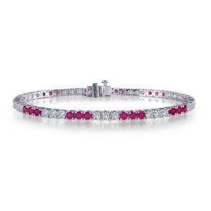 sparkly tennis bracelet is set with simulated diamonds and lab-grown rubies in sterling silver bonded with platinumSTONE COUNT: 57