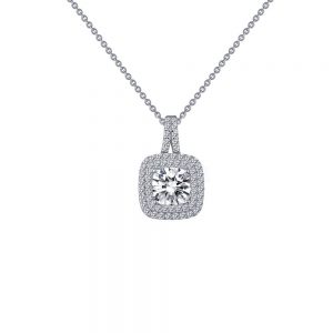 pendant is set with simulated diamonds in sterling silver bonded with platinum The pendant comes on an adjustable 18 inch chain |