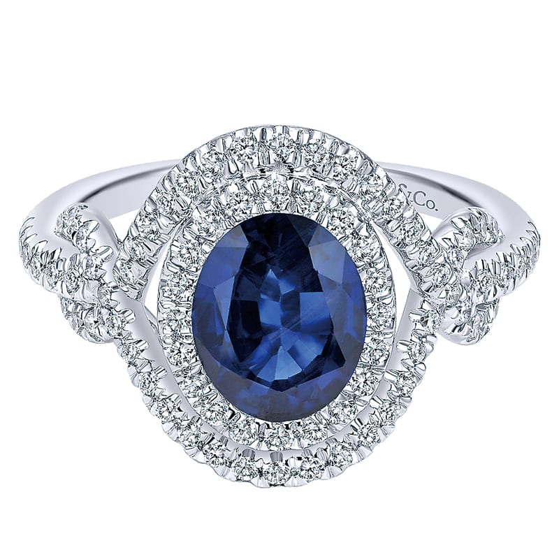 14k White Gold Diamond And Sapphire Fashion Ladies' Ring