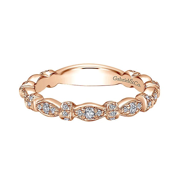 14k Pink Gold Diamond Alternating Pave Ladies Ring Ladies' Ring LR4579K45JJ