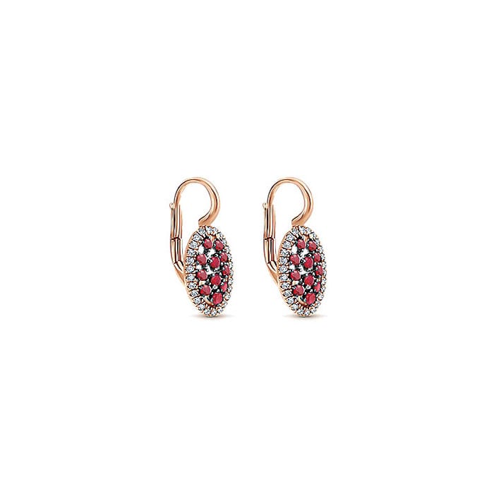 14k Pink Gold Diamond And Ruby Drop Earrings EG12583K45RA