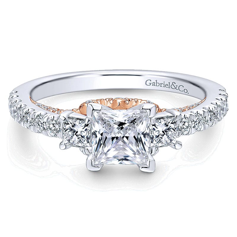 14k White and Pink Gold Diamond 3 Stones Engagement Ring ER12662S3T44JJ