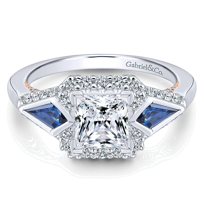 14k White and Pink Gold Diamond and SApphire 3 Stones Halo Two-Tone Engagement Ring ER12821S4T44SA