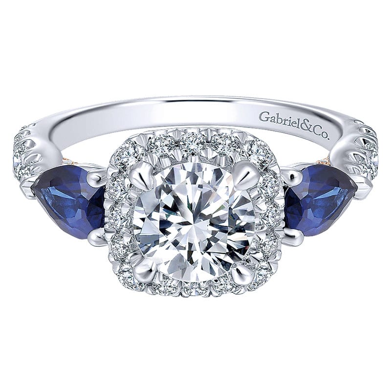 14k White and Pink Gold Diamond And Sapphire Halo Engagement Ring ER12617R4T44SA