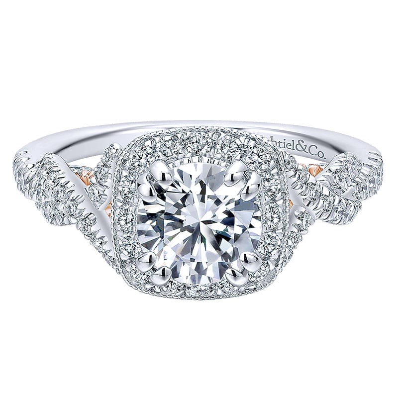 14k White and Pink Gold Diamond Halo Engagement Ring ER12621R4T44JJ
