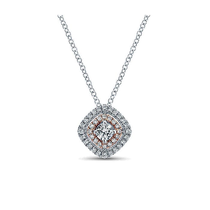 14k White and Pink Gold Double Pave Diamond Pendant Necklace NK4933T44JJ