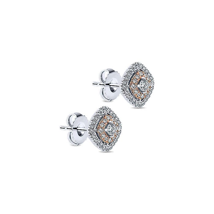14k White and Pink Gold Double Pave Diamond Stud Earrings EG12645T44JJ