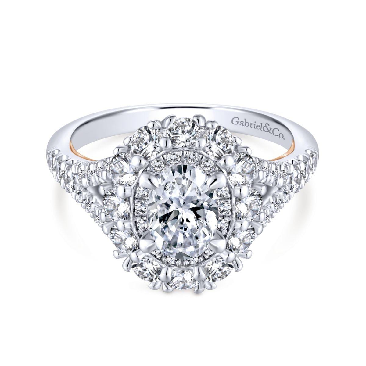 14K White and Rose Gold Oval Double Halo Diamond Engagement Ring ER13889O3T44JJ