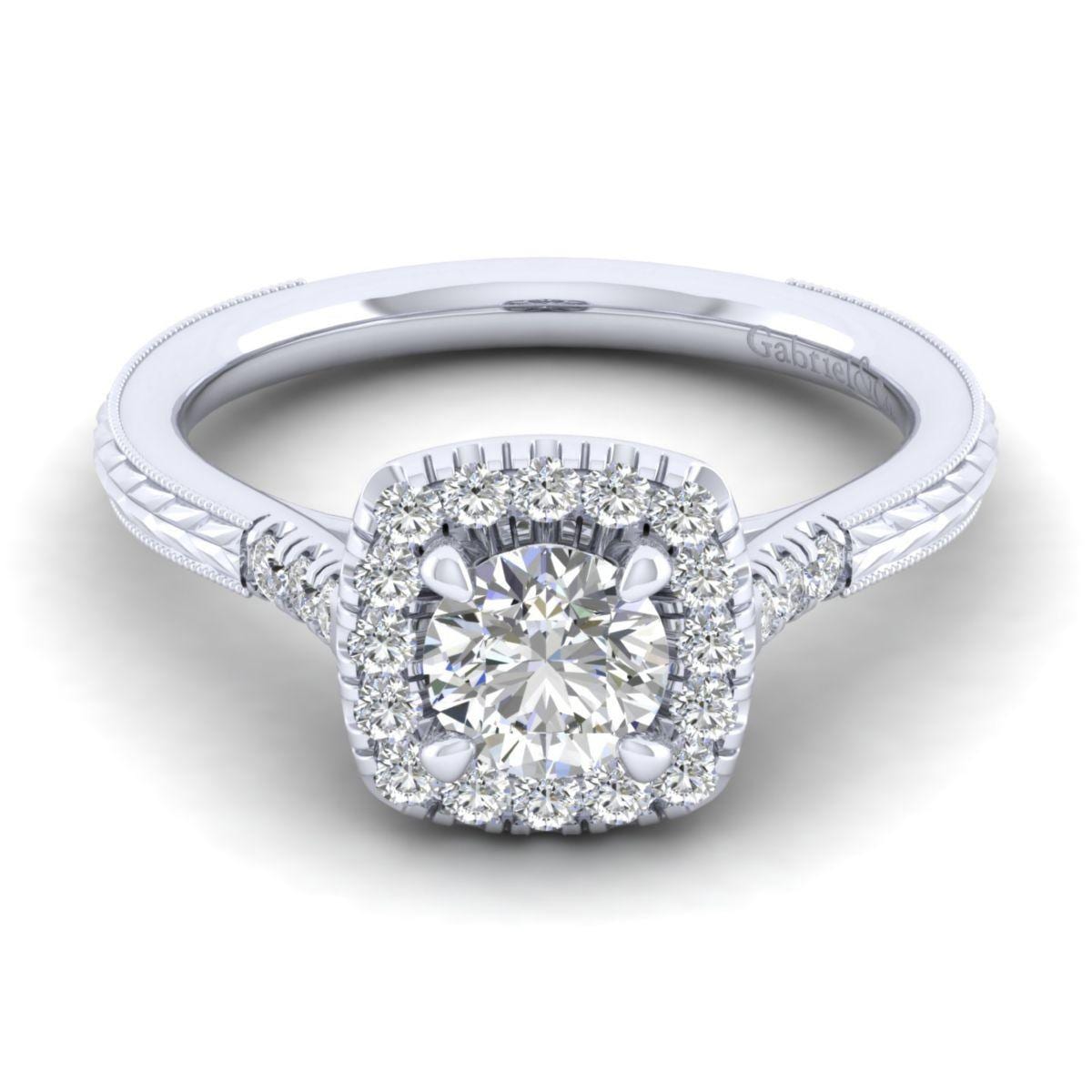 14K White Diamond Vintage Engagement Ring ER11292W44JJ