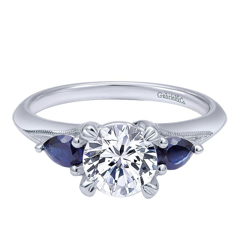 14K White Gold and SApphire 3 Stones 14K White Gold Engagement Ring ER10905W4Jsa