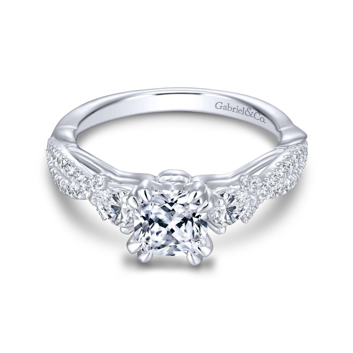 14K White Gold Cushion Cut Three Stone Diamond Engagement Ring ER13900C4W44JJ