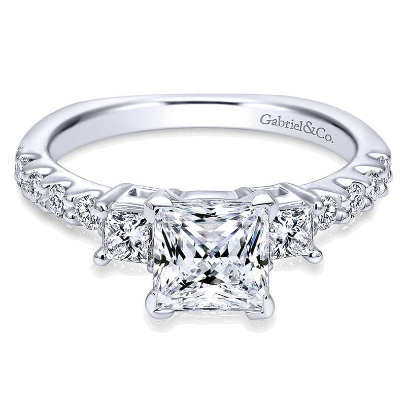 14K White Gold Diamond 3 Stone Princess Cut With European Shank 14K White Gold Engagement Ring ER4020W44JJ