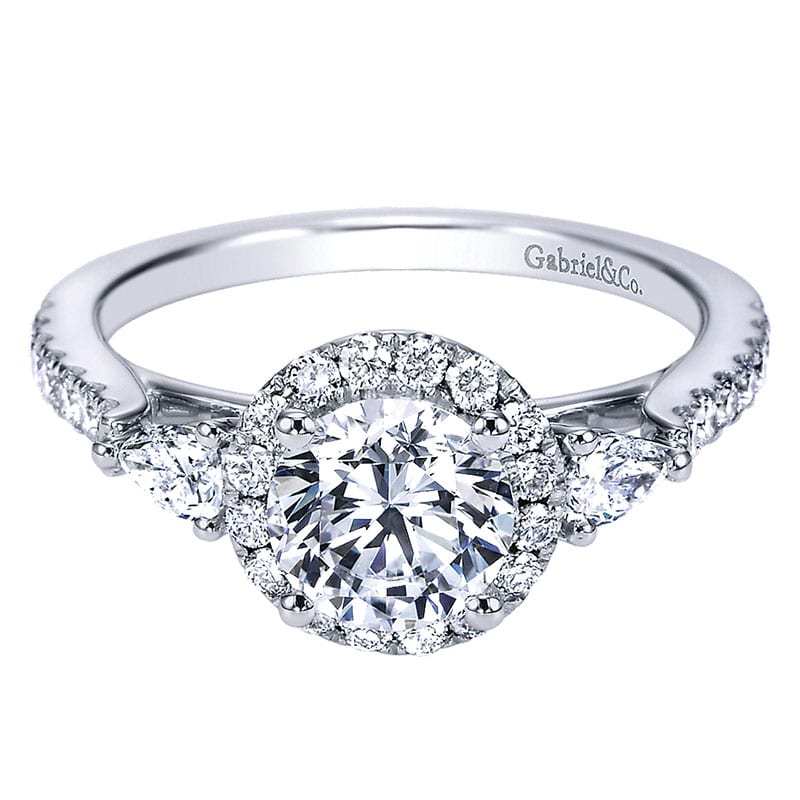 14k White Gold Diamond 3 Stones Halo Engagement Ring ER7506W44JJ