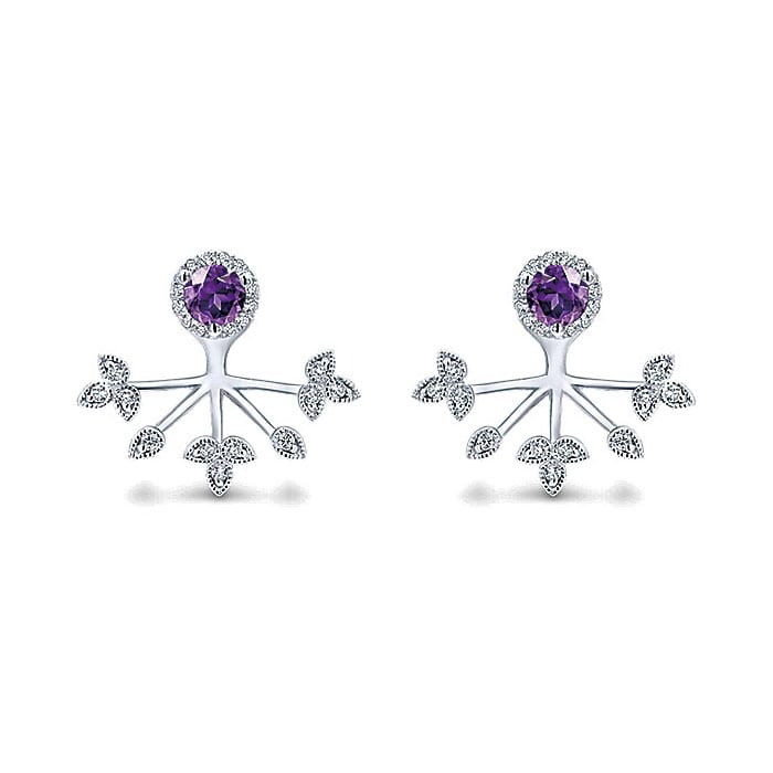 14k White Gold Diamond Amethyst Peek A Boo Earrings EG13017W45AM