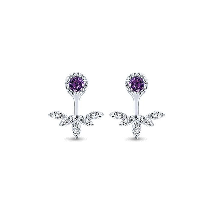 14k White Gold Diamond Amethyst Peek A Boo Earrings EG13047W45AM