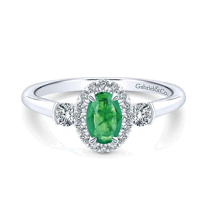 14k White Gold Diamond And Emerald Fashion Ladies' Ring LR51070W44EA