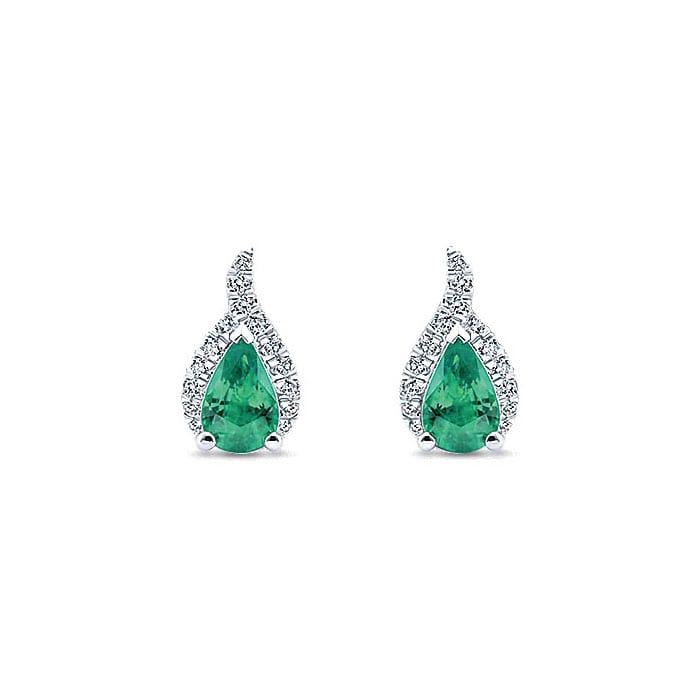14k White Gold Diamond And Emerald Stud Earrings EG13115W44EA
