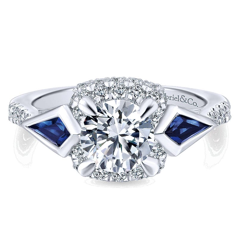 14K White Gold Diamond and SApphire 3 Stones Halo 14K White Gold Engagement Ring ER12127R4W44SA