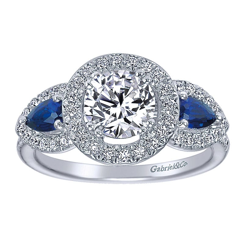 14k White Gold Diamond And Sapphire 3 Stones Halo Engagement Ring ER5351W44SA