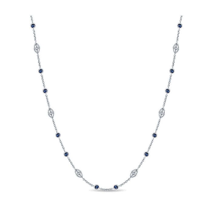 14k White Gold Diamond And Sapphire Diamond By The Yard Necklace NK1038W45SA