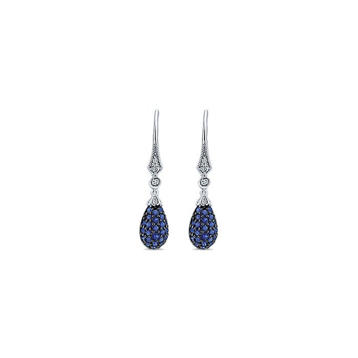 14k White Gold Diamond And Sapphire Drop Earrings EG12190W45SA