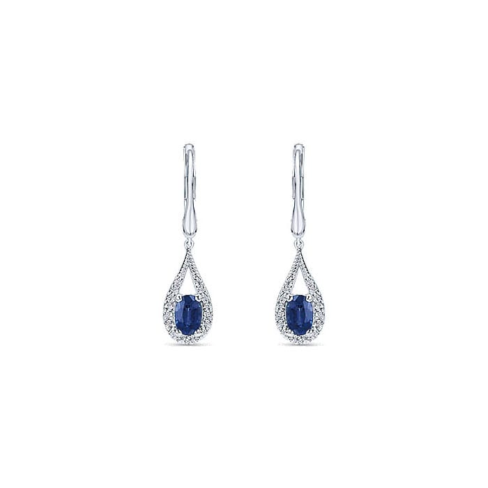14k White Gold Diamond And Sapphire Drop Earrings EG12195W44SA