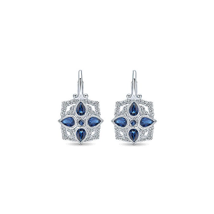 14k White Gold Diamond And Sapphire Drop Earrings EG12338W45SB