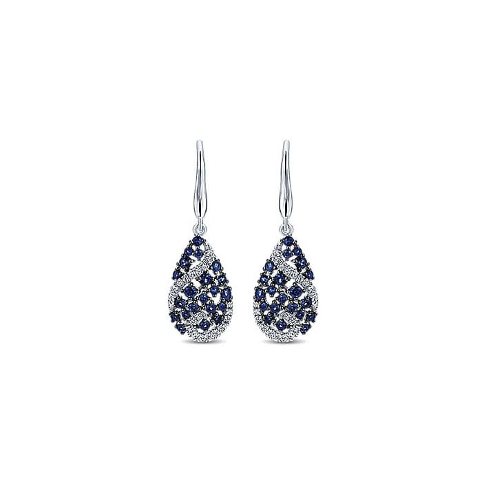 14k White Gold Diamond And Sapphire Drop Earrings EG12615W45SA