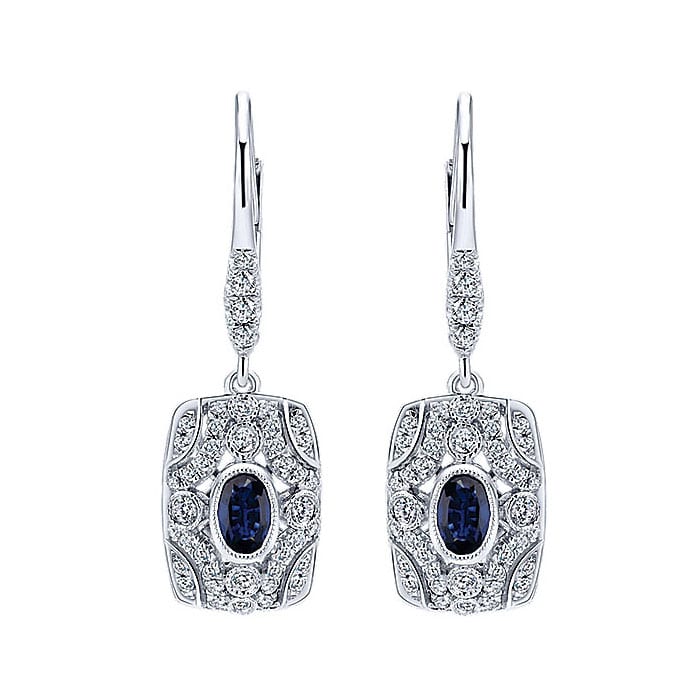 14k White Gold Diamond And Sapphire Drop Earrings EG12715W45SA