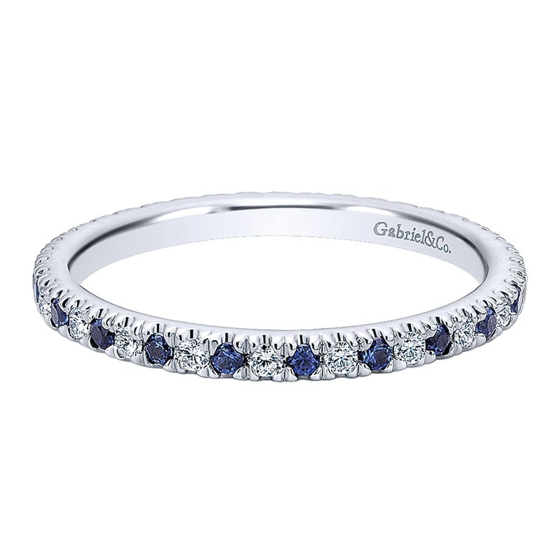 14K White Gold Diamond and Sapphire Eternity Band 14K White Gold Anniversary Band AN11357-6W44SA
