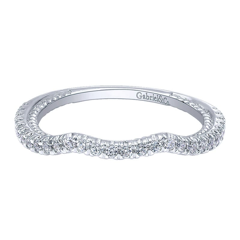 14k White Gold Diamond Curved Wedding Band WB10282W44JJ