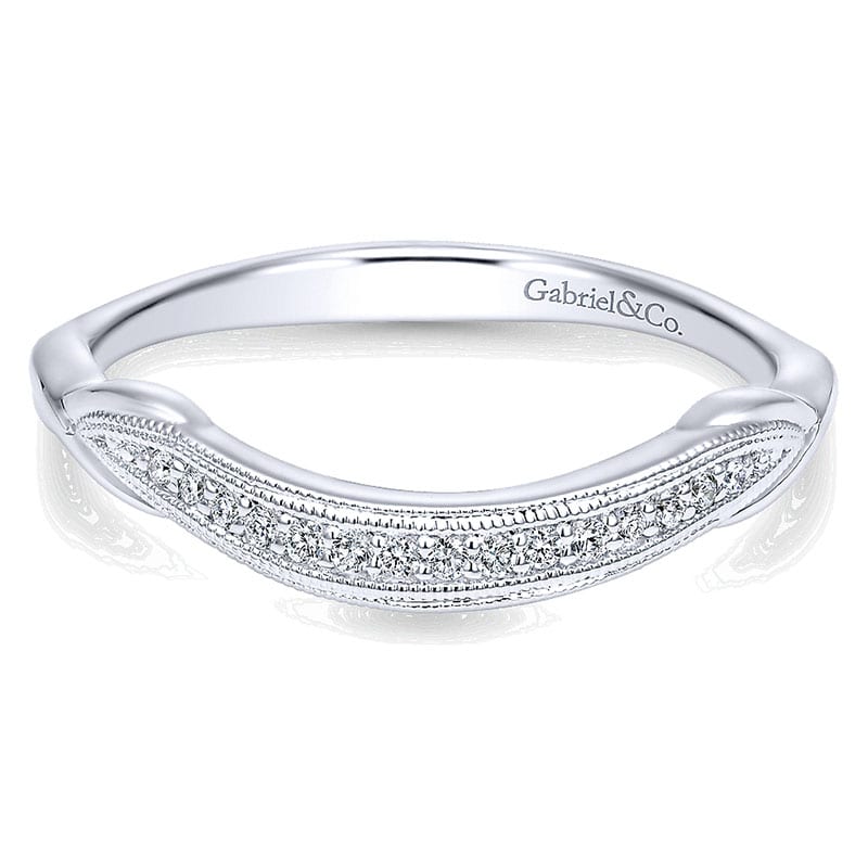 14k White Gold Diamond Curved Wedding Band WB11799R4W44JJ