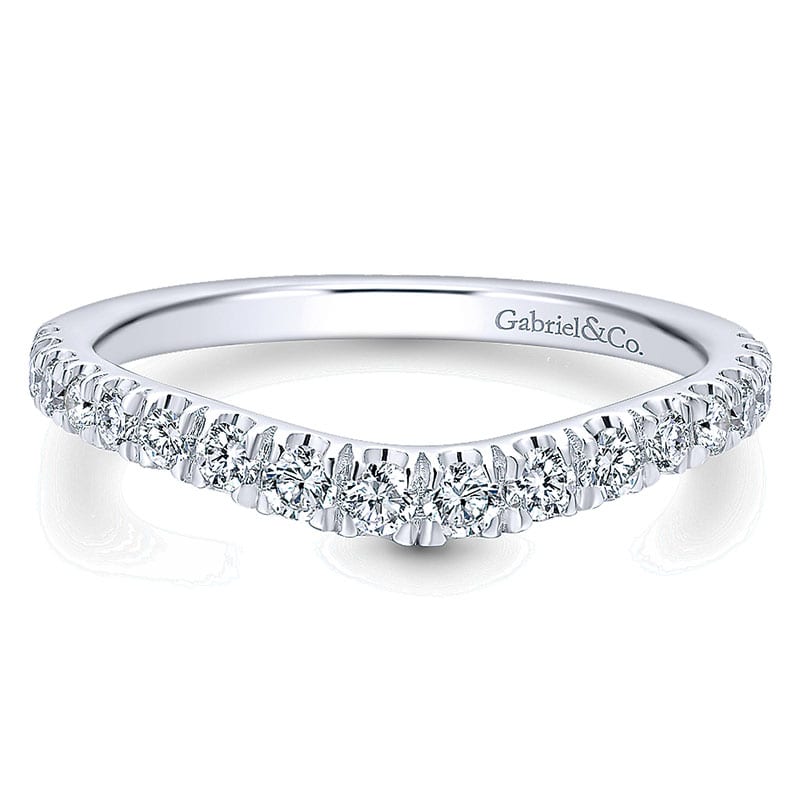 14k White Gold Diamond Curved Wedding Band WB12761R4W44JJ