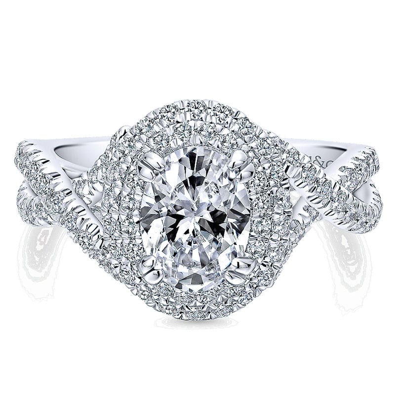 14K White Gold Diamond Double Halo 14K White Gold Engagement Ring ER12638O4W44Jj