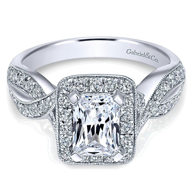 14K White Gold Diamond Halo 14K White Gold Engagement Ring ER10747W44Jj