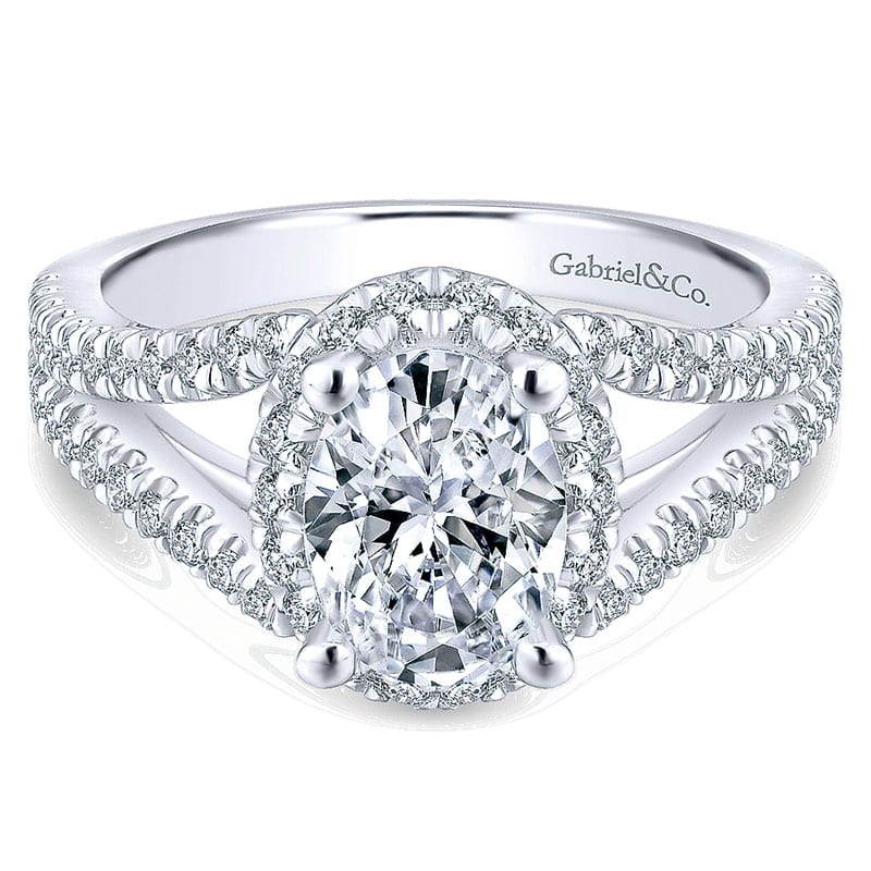 14K White Gold Diamond Halo 14K White Gold Engagement Ring ER12637O4W44Jj