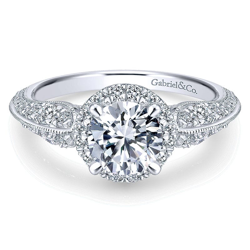 14K White Gold Diamond Halo 14K White Gold Engagement Ring ER12887R4W44Jj