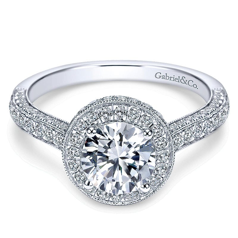 14K White Gold Diamond Halo 14K White Gold Engagement Ring ER7489W44Jj