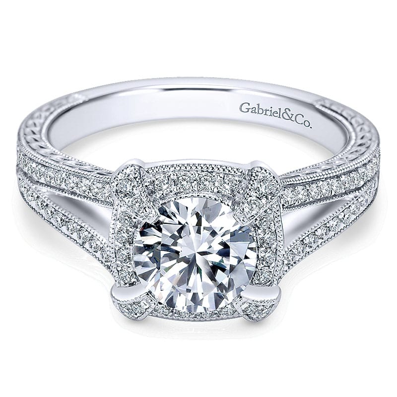 14K White Gold Diamond Halo 14K White Gold Engagement Ring ER7493W44Jj