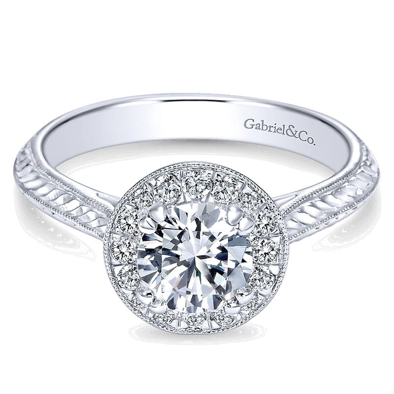 14K White Gold Diamond Halo 14K White Gold Engagement Ring ER8709W44Jj