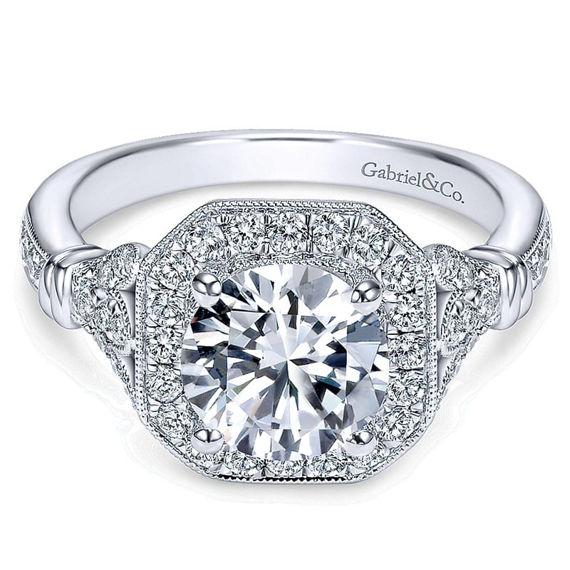 14K White Gold Diamond Halo 14K White Gold Engagement Ring ER8985W44Jj