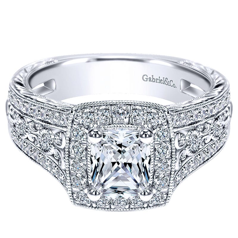 14K White Gold Diamond Halo 14K White Gold Engagement Ring ER9041W44Jj