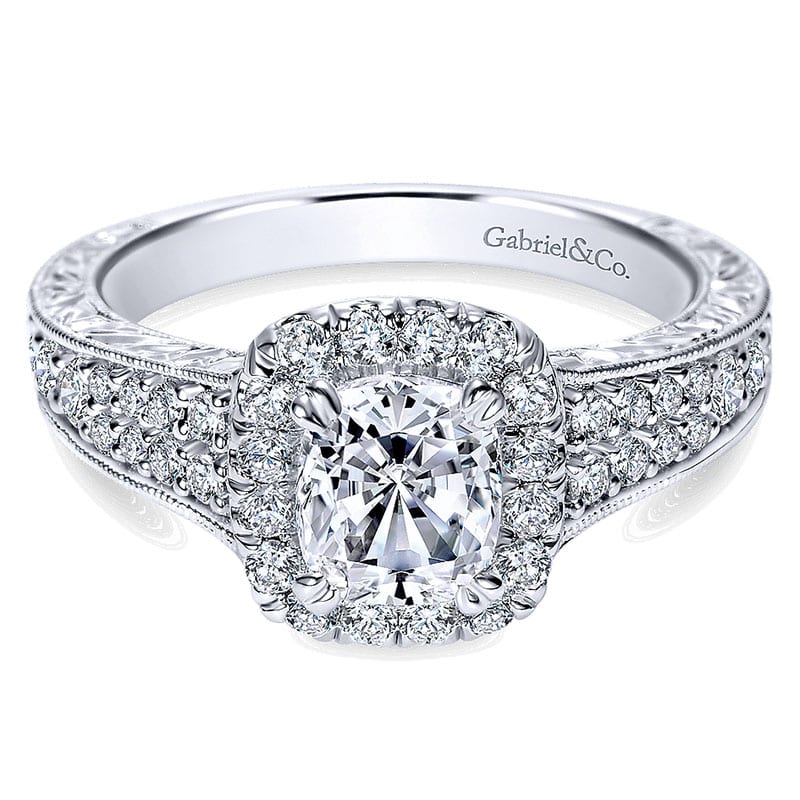 14K White Gold Diamond Halo 14K White Gold Engagement Ring ER9074W44Jj