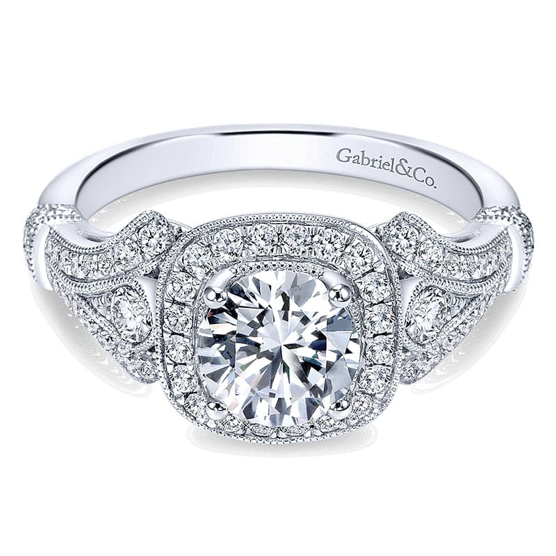 14K White Gold Diamond Halo and Filgree Setting 14K White Gold Engagement Ring ER7479W44Jj