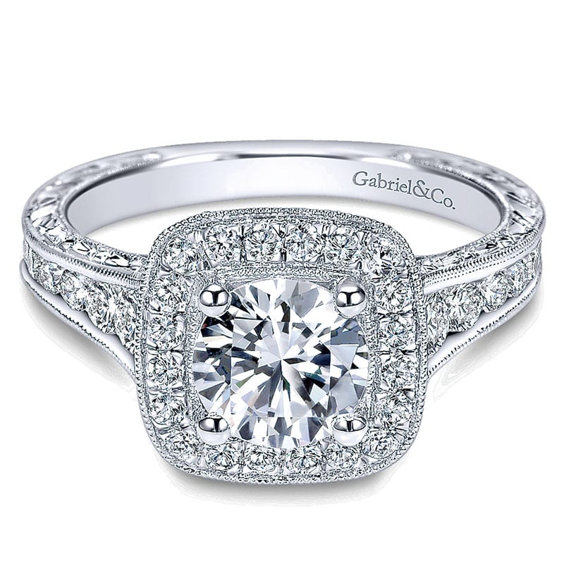 14K White Gold Diamond Halo Channel and Milgrain 14K White Gold Engagement Ring ER8794W44Jj