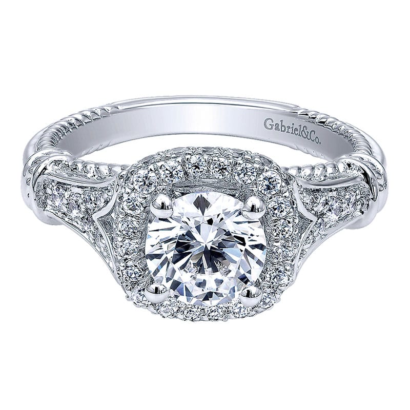 14k White Gold Diamond Halo Engagement Ring ER10237W44JJ