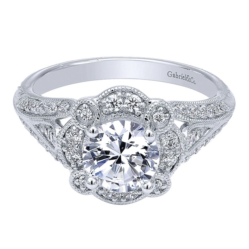 14k White Gold Diamond Halo Engagement Ring ER10293W44JJ