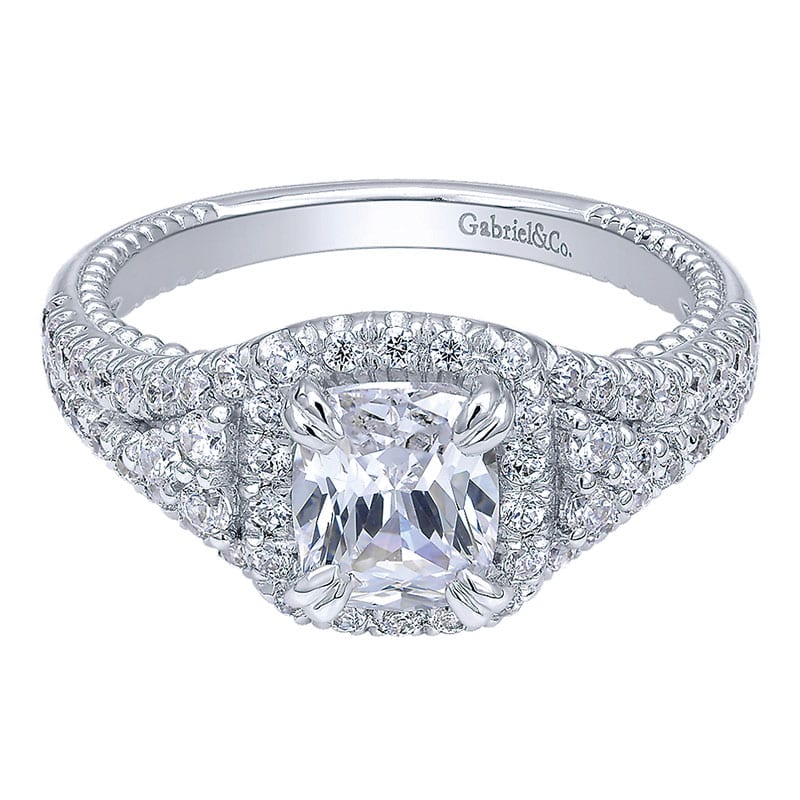 14k White Gold Diamond Halo Engagement Ring ER10748W44JJ